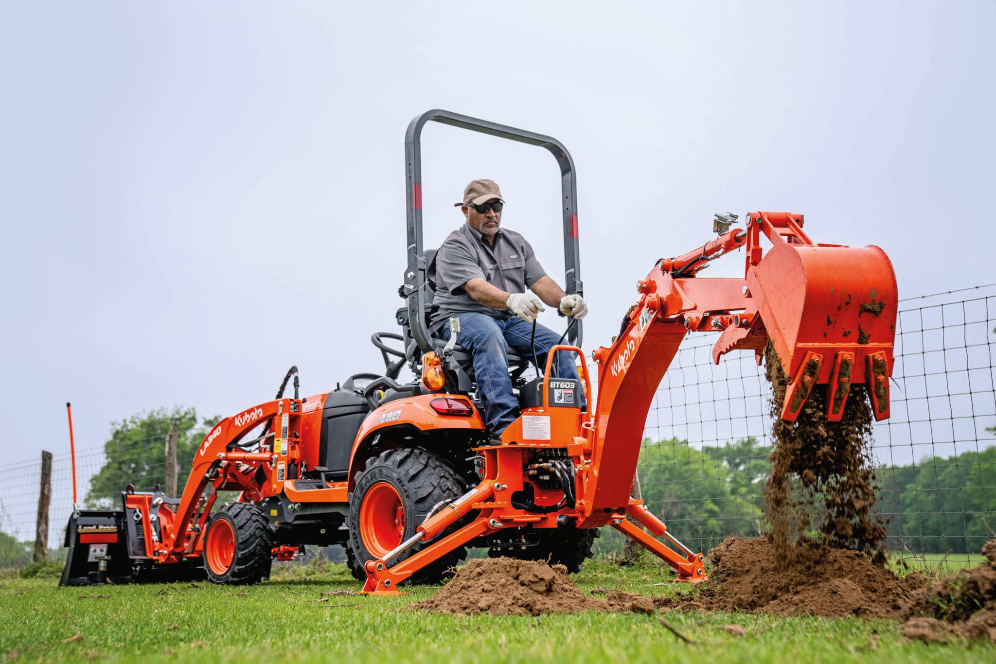 *Customer instant rebates of $5,250 are available on qualifying finance or cash purchases or BX23S equipment. **0% Down, 5.99% A.P.R. financing for up to 84 months on purchases of select new Kubota BX23S equipment from participating dealers’ in stock inventory is available to qualified purchasers through Kubota Credit Corporation, U.S.A.; subject to credit approval. Example: 84 monthly payments of $14.60 per $1,000 financed. Some exceptions apply. Offers expires 12/31/2025. Terms subject to change. This material is for descriptive purposes only. Kubota disclaims all representations and warranties, express or implied, or any liability from the use of this material. For complete warranty, disclaimer, safety, incentive offer and product information, see Dealer or go to KubotaUSA.com. †Power (HP/KW) and other specifications are based on various standards or recommended practices.
